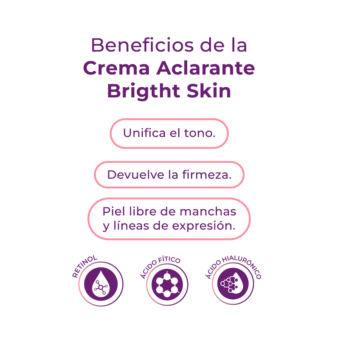 Delicada formula que unifica el tono y devuelve la firmeza a tu piel, la combinación de Retinol, Ácido Fítico y Ácido Hialurónico te ofrecerá una textura renovada y juvenil. Transforma tu piel y experimenta un rostro libre de manchas y líneas de expresión.