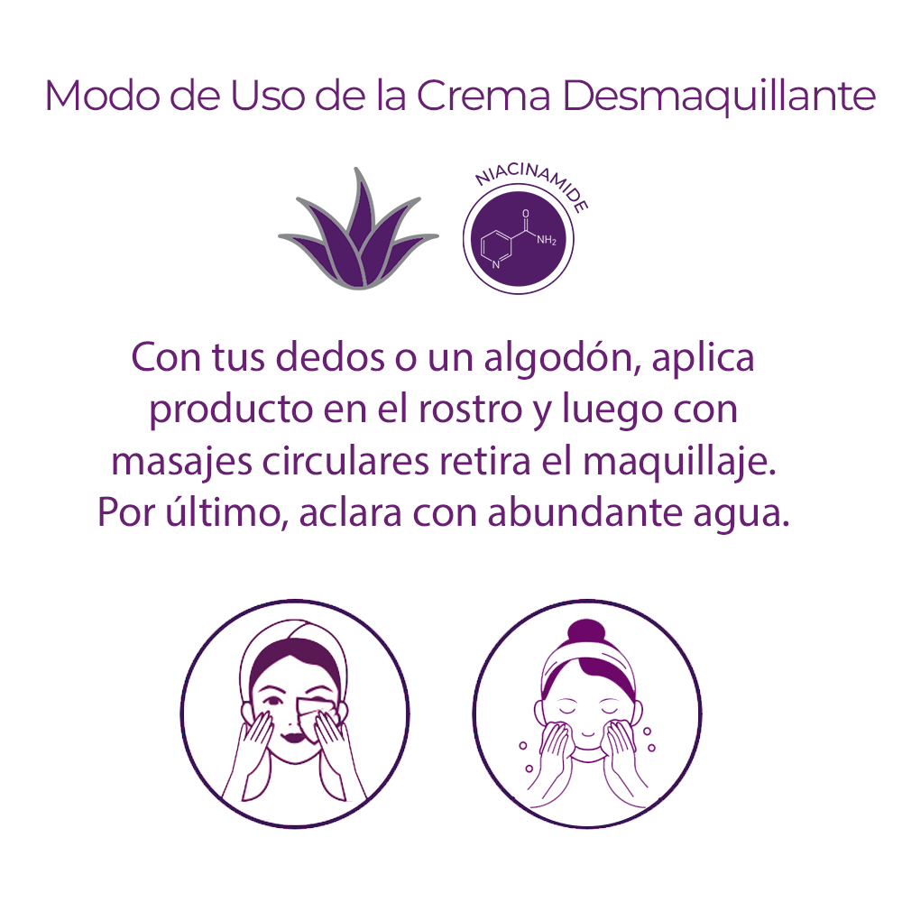 Usar para retirar maquillaje o limpiar el rostro, luego aplicar agua micelar (en caso de tenerla) y por último el gel limpiador. Continuar con la rutina de nutrición y tratamiento según la piel.